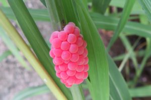 田んぼにある鮮やかなピンク色の卵、ジャンボタニシの卵についてご説明します。