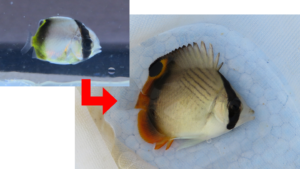チョウチョウウオの浮遊期の姿、トリクティス幼生について解説します。また、トリクティス幼生がどのような変化を遂げるのか、採集した稚魚の写真とともにご紹介いたします。